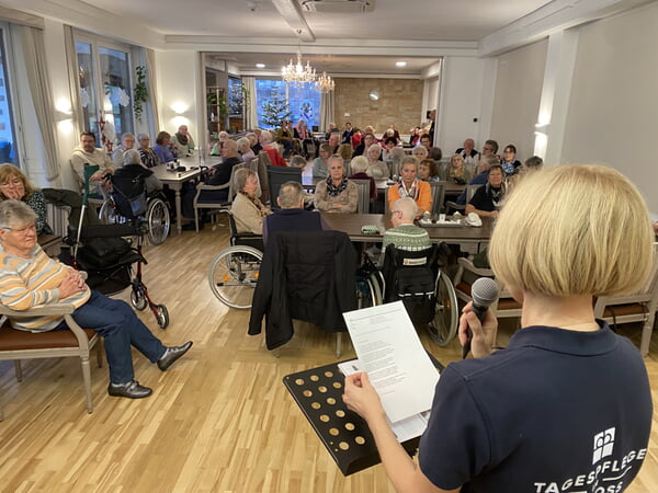 Die Idee, dass Angehörige mit Gästen zusammen Zeit verbringen können, war das Konzept für die gemeinsame Einstimmung auf den Advent in der Tagespflege im Schloss. Ein paar Stunden abseits vom Alltag, bei Punsch, Tee und weihnachtlichen Süßigkeiten. Über 140 Personen kamen ins Schloss und es wurde gemeinsam gesungen, gespielt, gebastelt, gelacht und unterhalten. Die Gäste der Tagespflege freuten sich und waren stolz, ihren Angehörigen die Tagespflege und ihre Aktivitäten zu präsentieren. Zum Abschluss bewegte sich das Schloss zu den Klängen des Schneewalzers. Das Team der Tagespflege sagt Danke an alle für die gemeinsame Zeit.